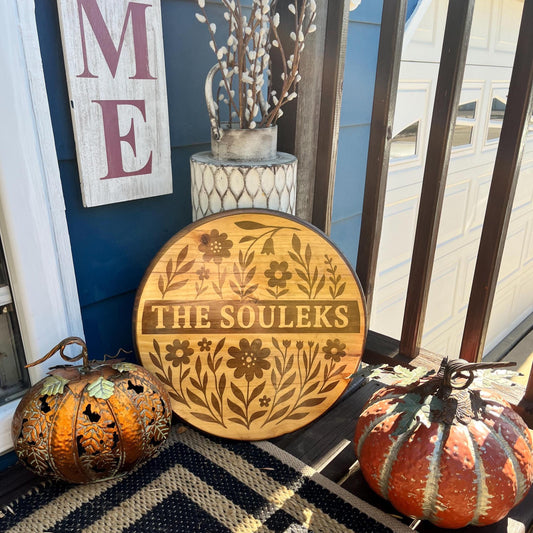 Personalized Wood Name Sign – Custom Stained Round Last Name Flower Girly Fall Retro | Handcrafted Last Name Wall Art | Rounds by Rachel