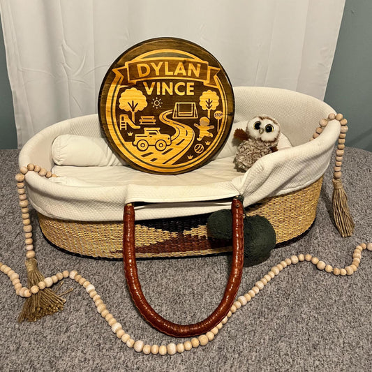 Personalized Wood Name Sign – Custom Stained Round Park Roads Boy Fun Outdoor | Handcrafted Baby Name Wall Art | Rounds by Rachel